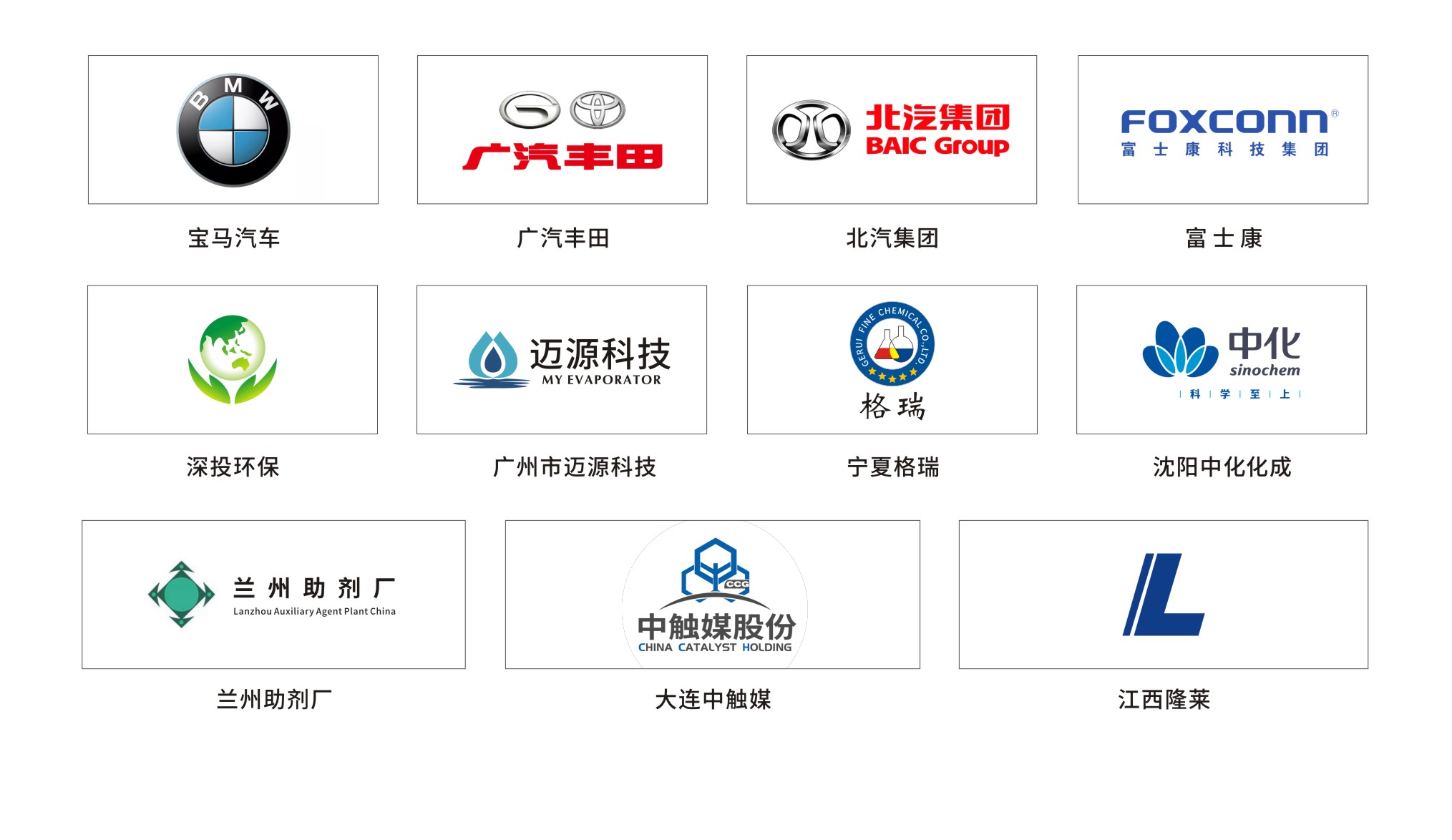 目前,公司已在成都、大連、蘇州、內(nèi)蒙古等地設(shè)立了辦事機(jī)構(gòu),服務(wù)的客戶包括深投環(huán)保、寶馬汽車、富士康、廈門嘉戎、寧夏格瑞,蘭州助劑廠、江西隆萊、大連中觸媒等行業(yè)內(nèi)領(lǐng)頭企業(yè),在國(guó)內(nèi)落地項(xiàng)目有170多家。